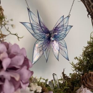 Les ailes de fée sont à base de résine et d’encre, ainsi que de cristaux Swarovski.
