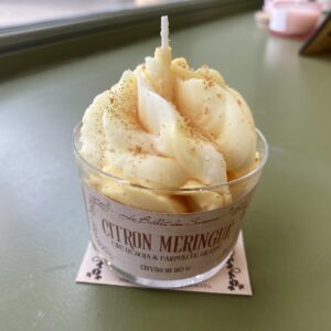 Apportez une touche de gourmandise à votre intérieur avec cette bougie artisanale unique au doux parfum de tarte au citron meringuée !