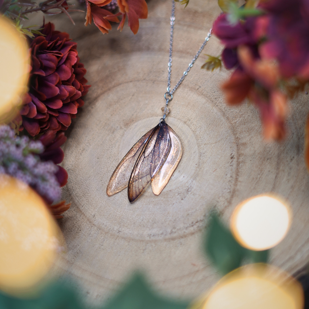 Dimensions : pendentif ailes de fée 5 x 3 cm / chaîne réglable 45 ou 50 cm