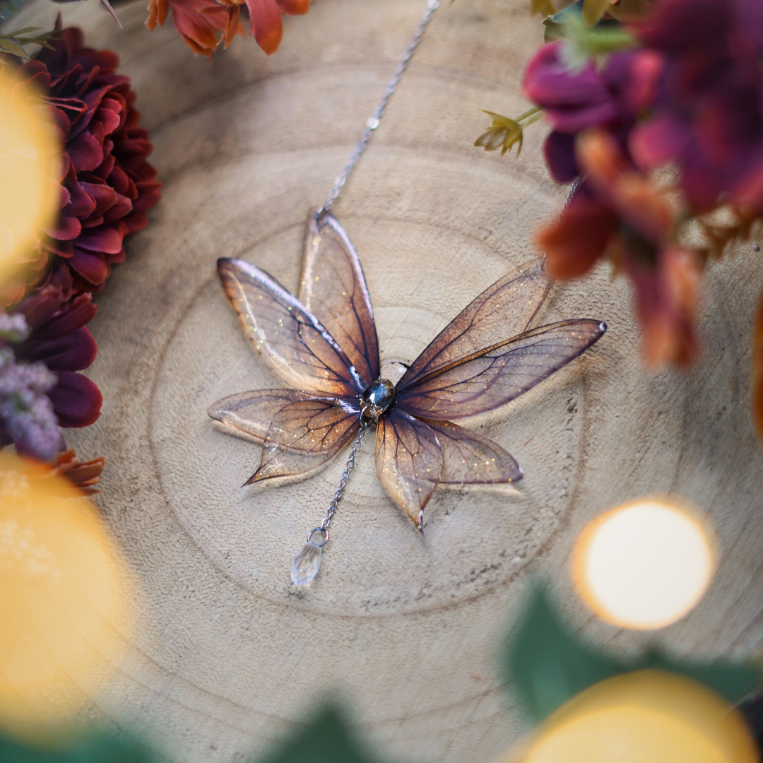 Les nuances de marron, profondes et translucides, jouent avec la lumière et révèlent des reflets délicats à chaque mouvement.