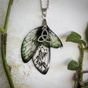 Un pendentif féerique inspiré des légendes celtiques et des esprits de la nature avec des ailes de fées confectionnées à la main.